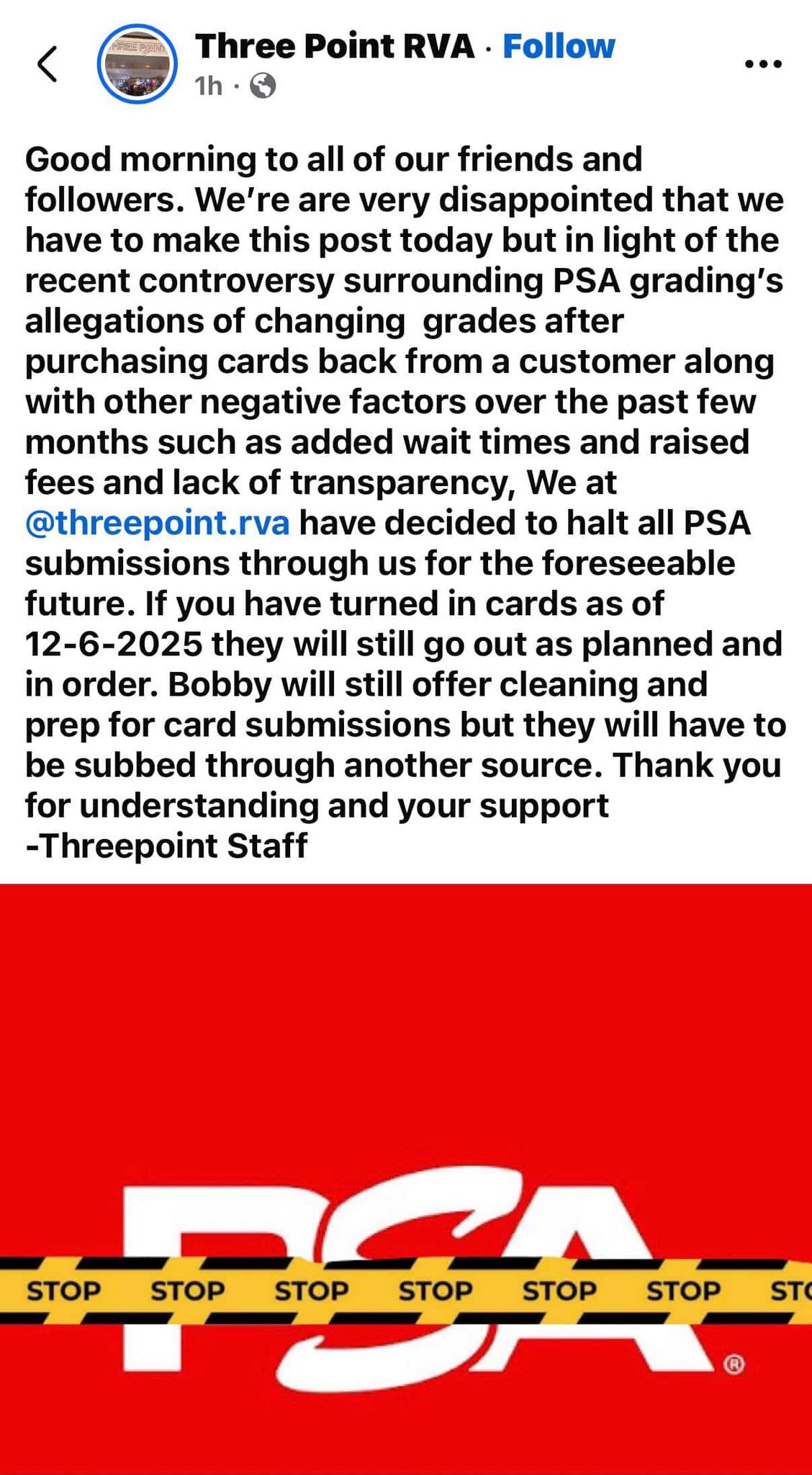 In related news, two card shops have halted PSA submissions: